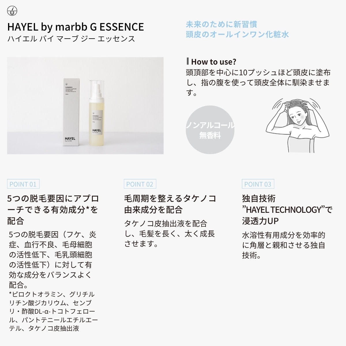 HAYEL by marbb G ESSENCE:(新習慣)トリートメント後、スッキリ洗い流した頭皮のケアに